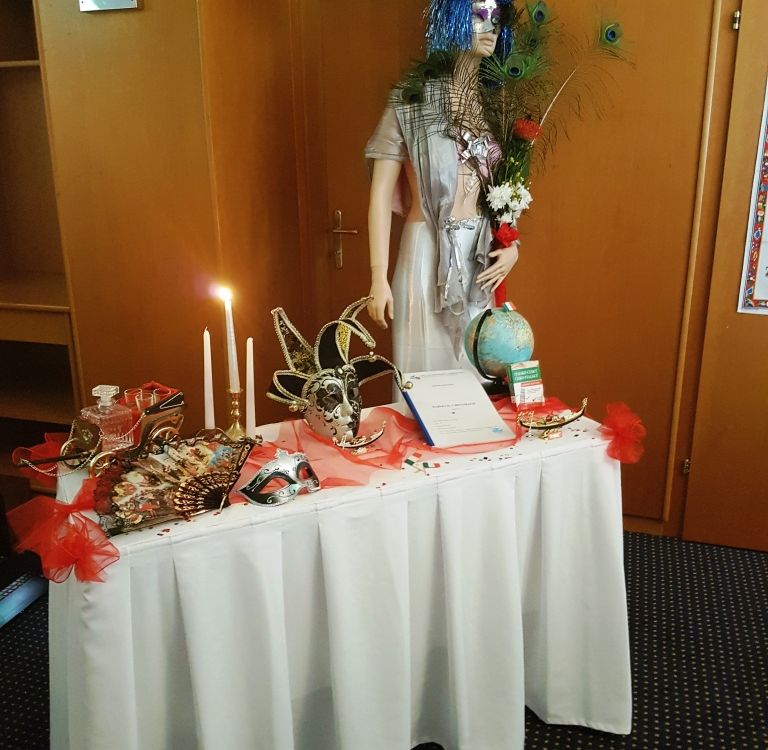 Dne 5.4.2018 se konala v hotelu Panorama praktická část maturitní zkoušky pro obor holelnictví a turismus - třída 4.A. Téma banketu - Karneval v Benátkách, vedoucí týmu Iliev Nikolai.